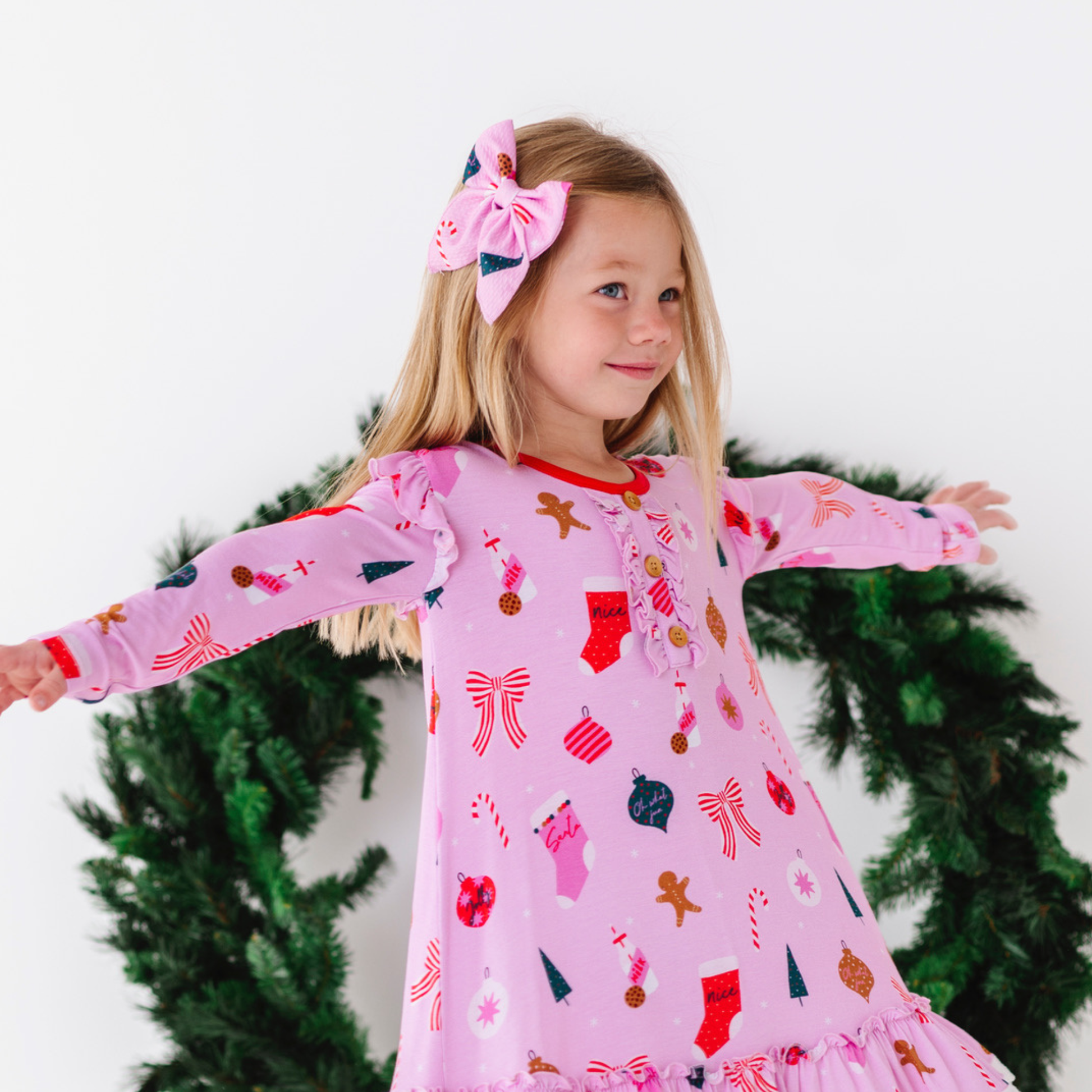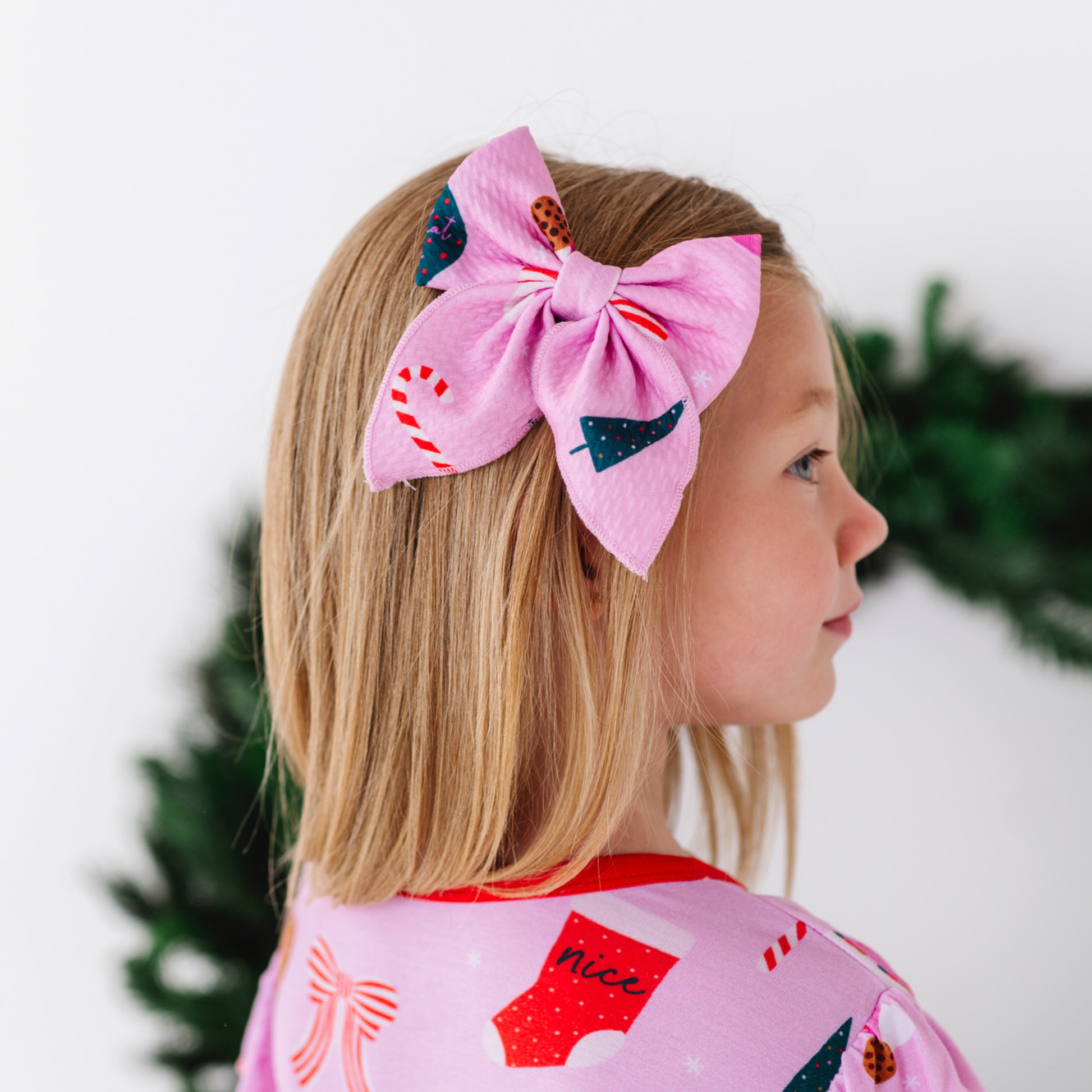 The perfect accessory for your little cutie to match her pajamas. These bows are super clip into the hair with ease.