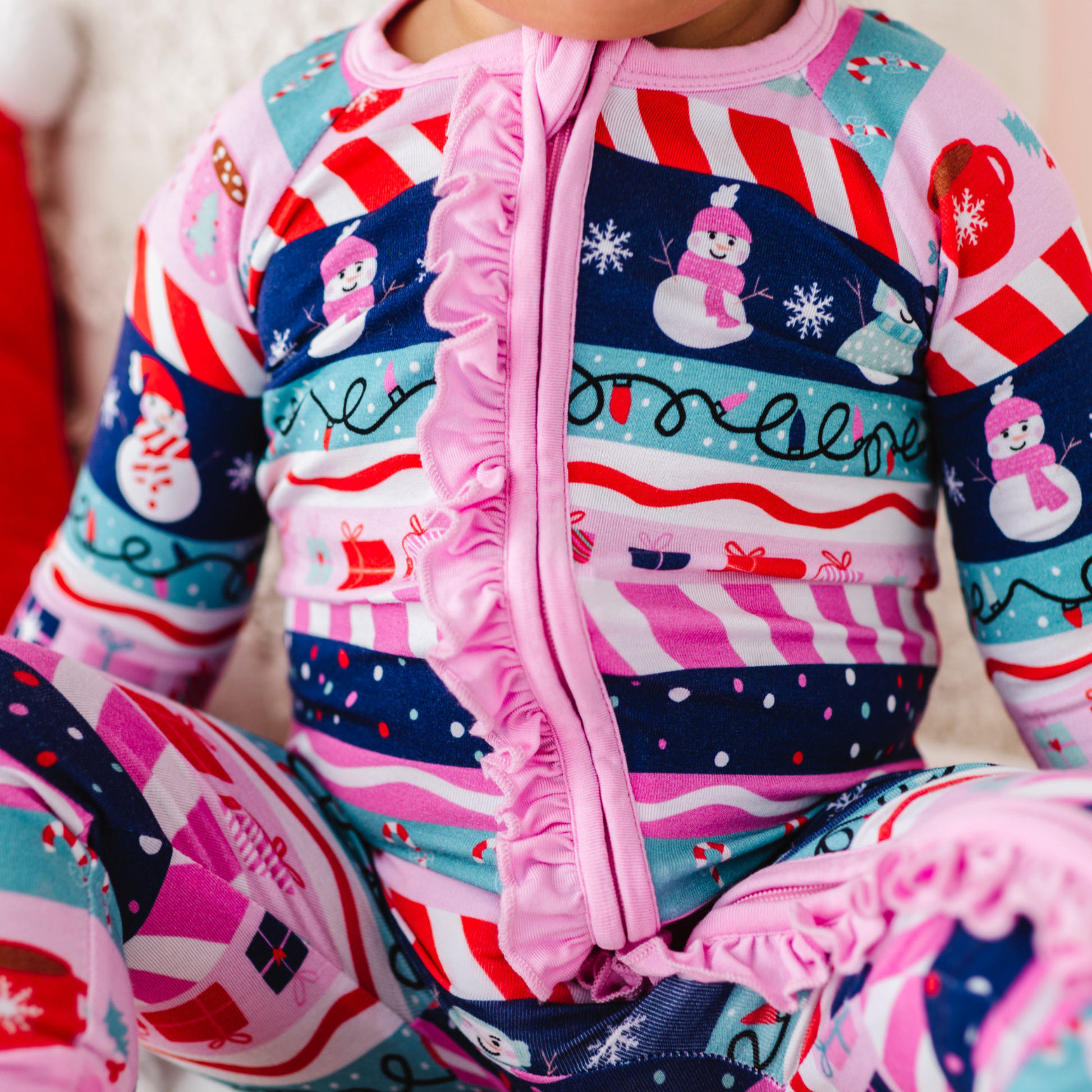 Our convertible footies have been added by popular demand. These feature our signature double zippers, making wardrobe changes and diaper changes a breeze. Pair that with our ultra-soft bamboo fabric and one-of-a-kind prints and you've got a new staple in your baby's wardrobe. Simply fold over the footies to convert from a romper to a footie in seconds. These also feature our silicone grips to prevent any slips!