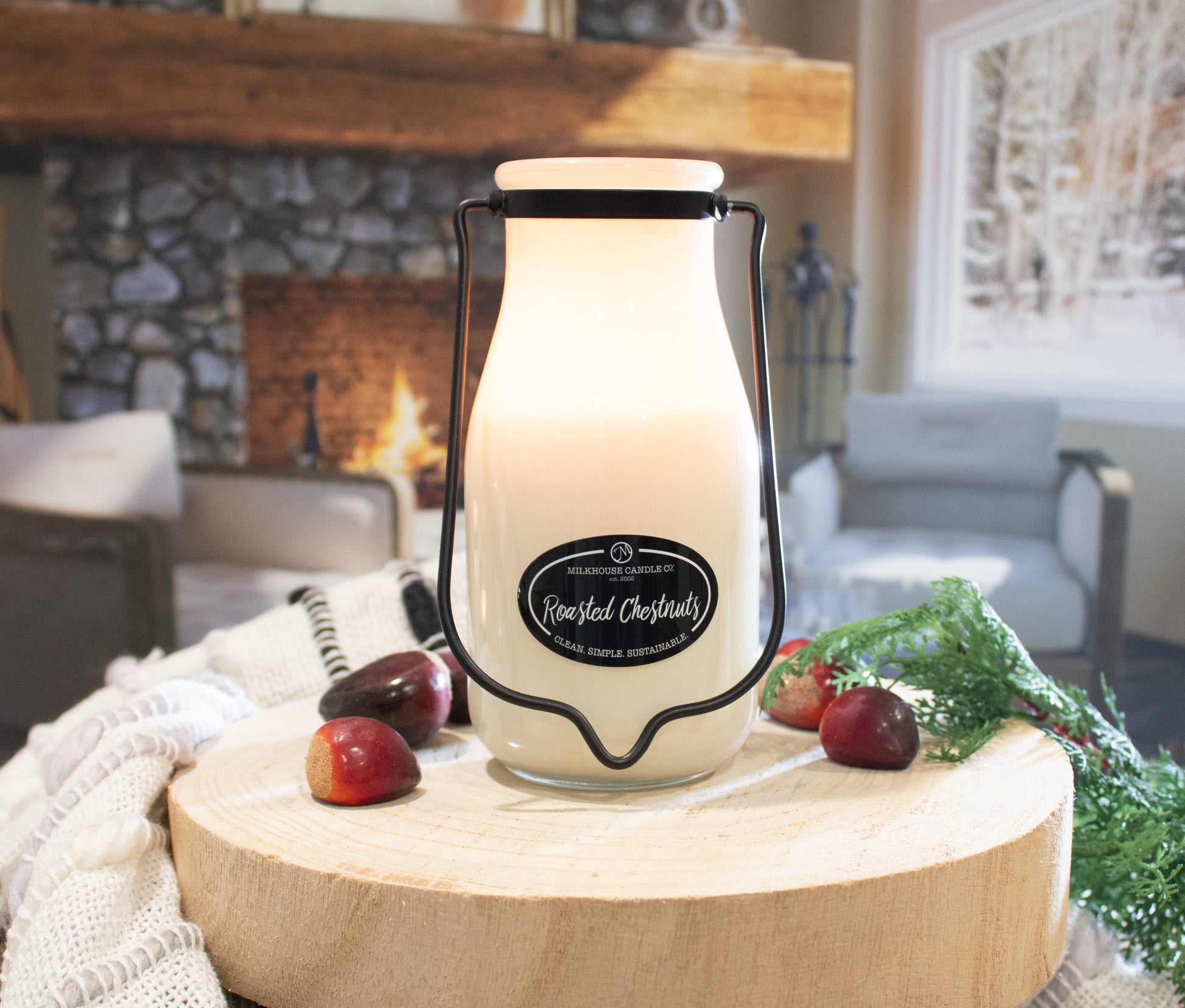 Milkhouse Candle Company - 14 oz Milkbottle Candle: Roasted Chestnuts